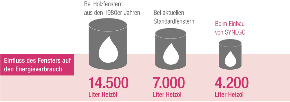 *Standardfenster mit Uw = 1,36 W/m²K; SYNEGO mit Uw = 0,66 W/m²K